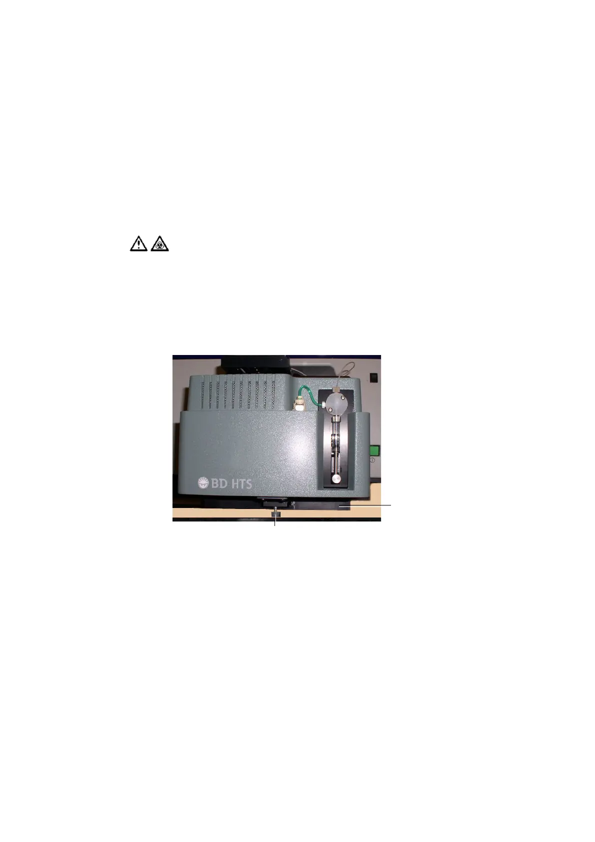 1 Loosen the positioning screw holding the HTS to the cytometer support