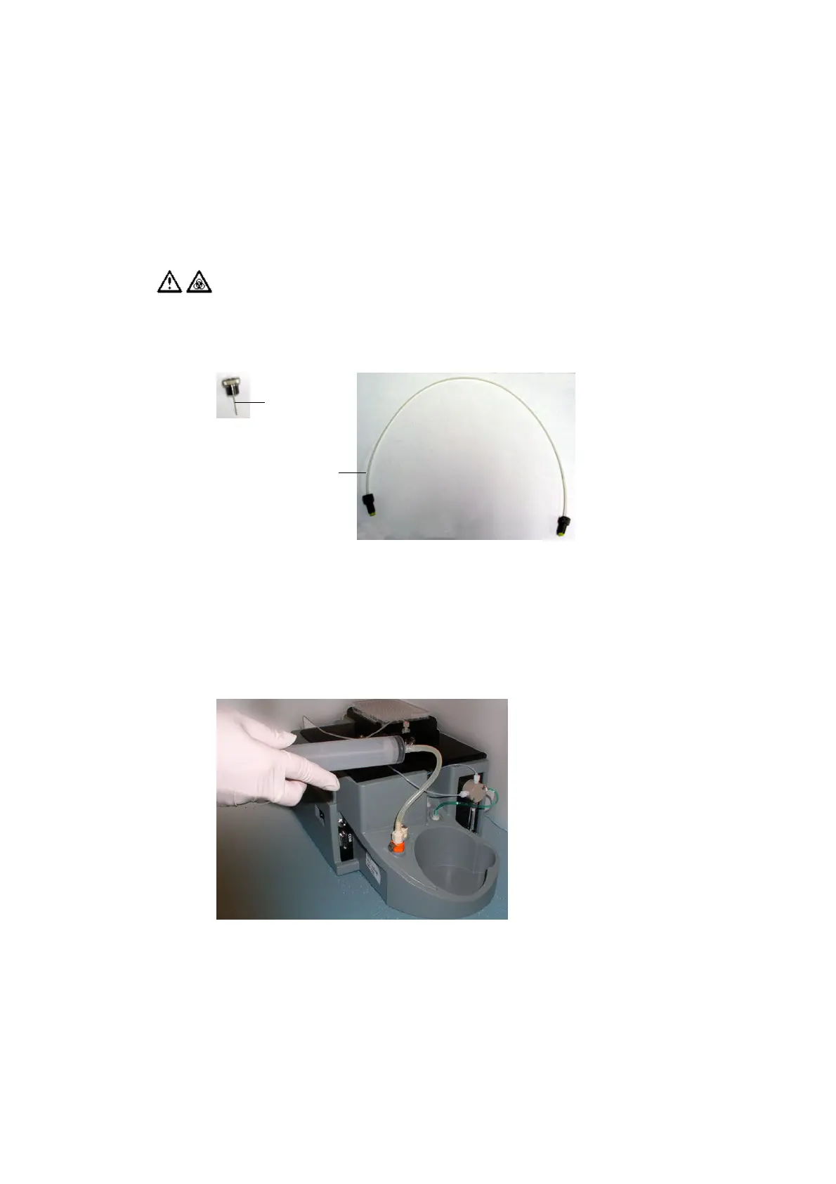2 Pipette a 10% bleach solution into the injection port/wash station.