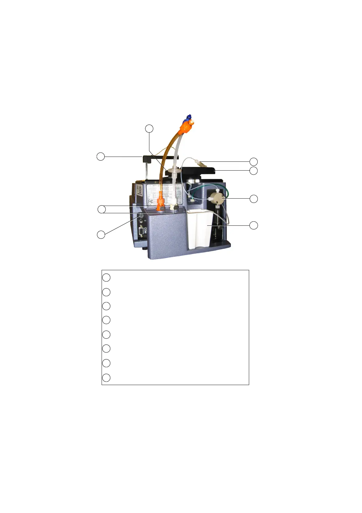Fluidics tubing: sheath (clear, with in-line filter) and waste (orange)