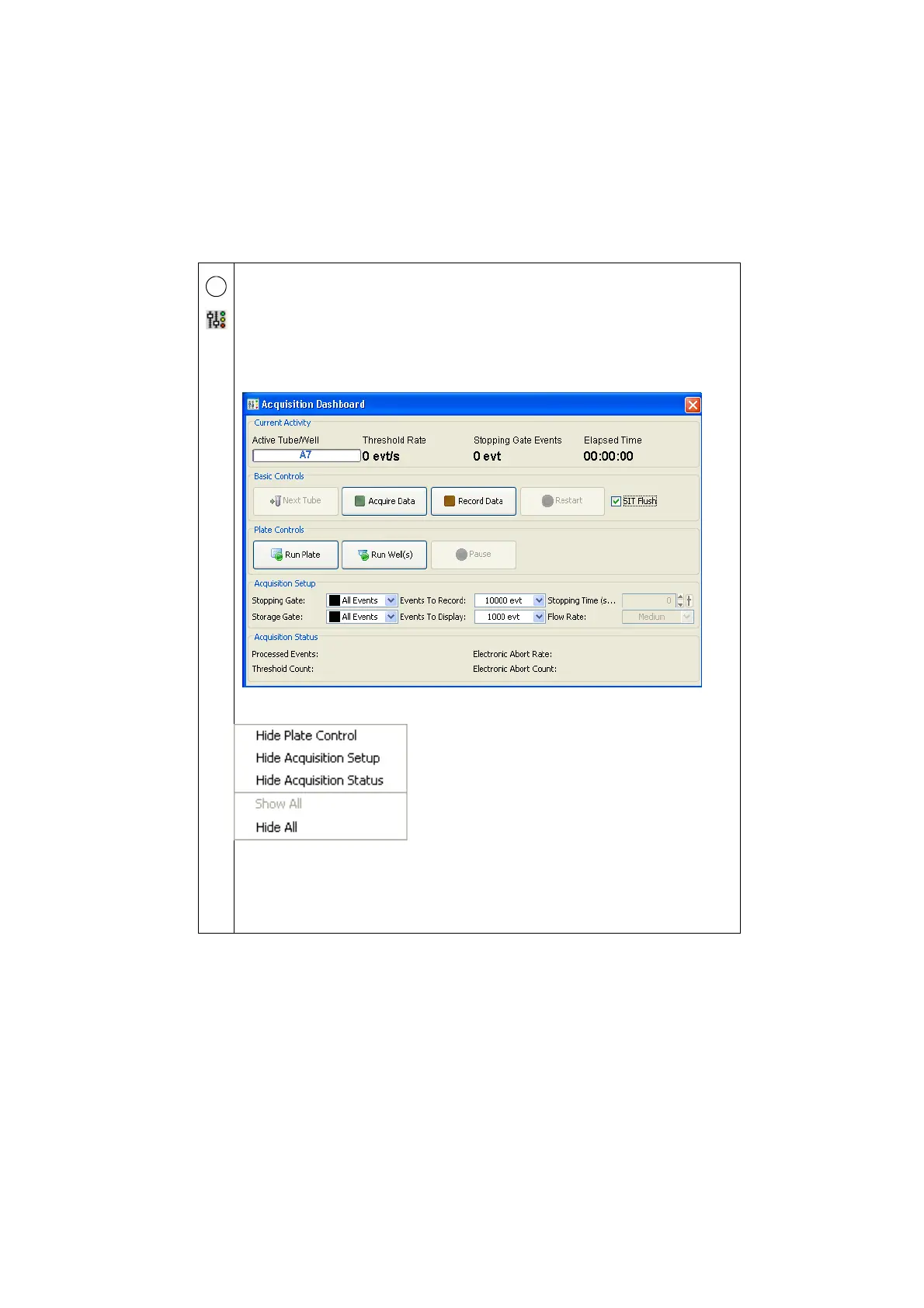To show or hide the Plate Controls, Acquisition Setup, or Acquisition Status