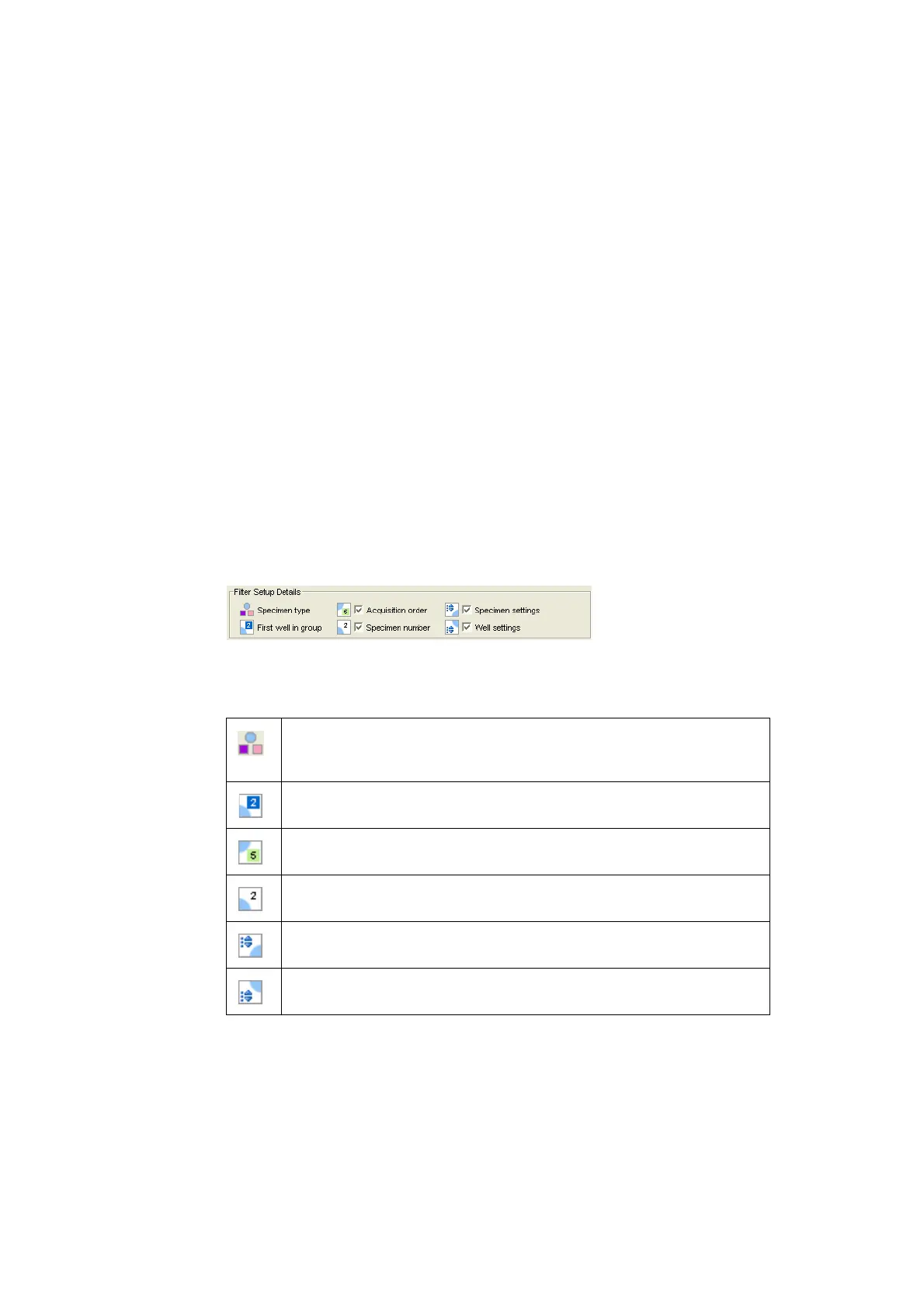 the plate and allows you to filter (hide or show) acquisition order, specimen