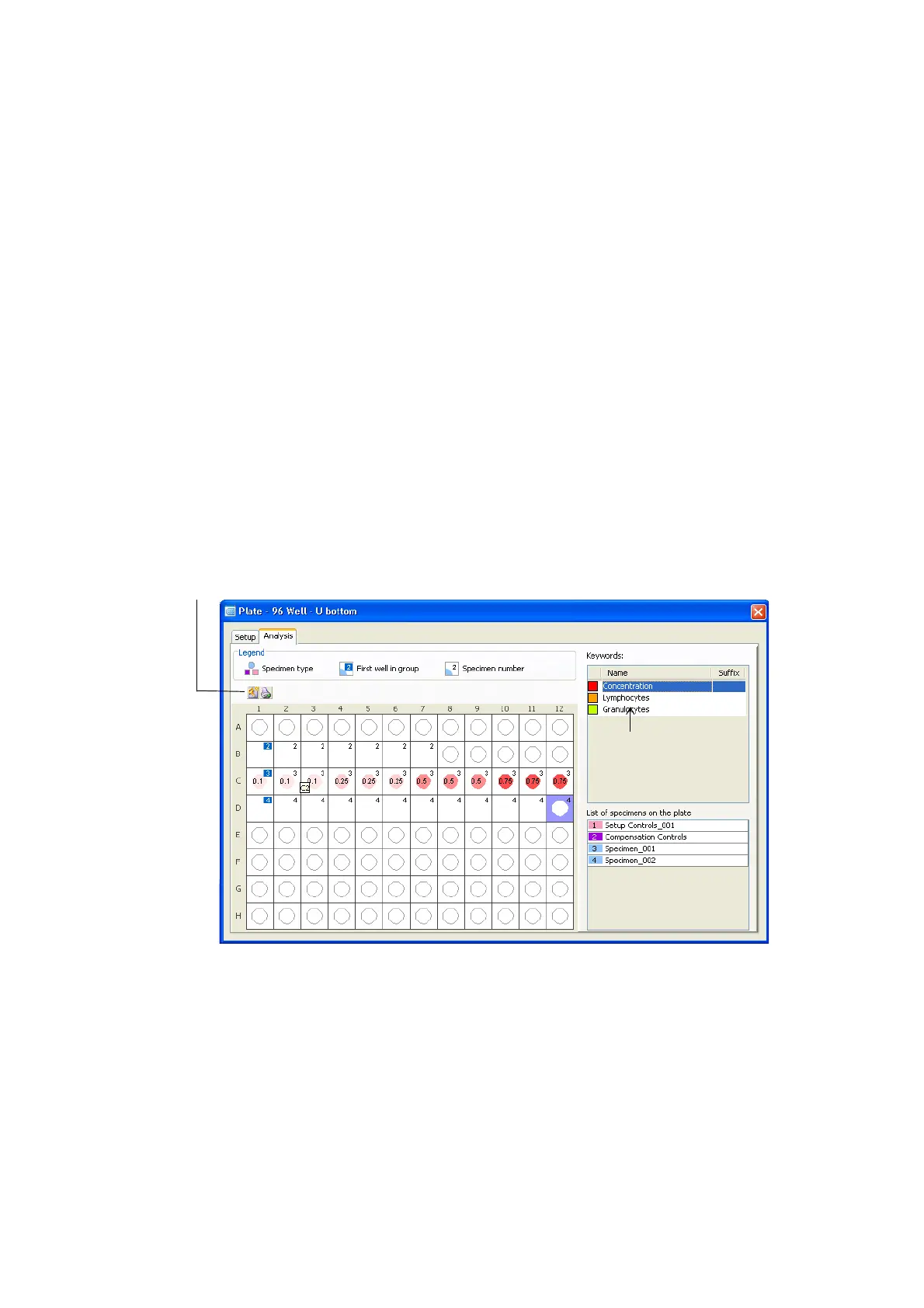list toggles the plate layout to show the Keywords Analysis view. See Figure 2-3.