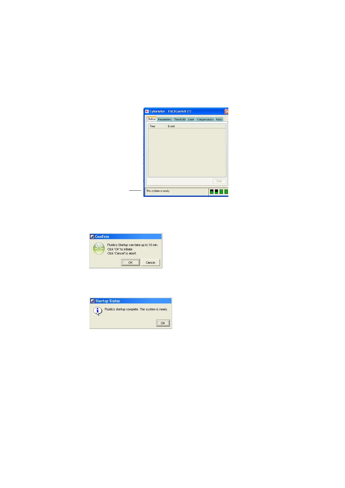 - Click OK to begin fluidics startup. When fluidics startup is complete,