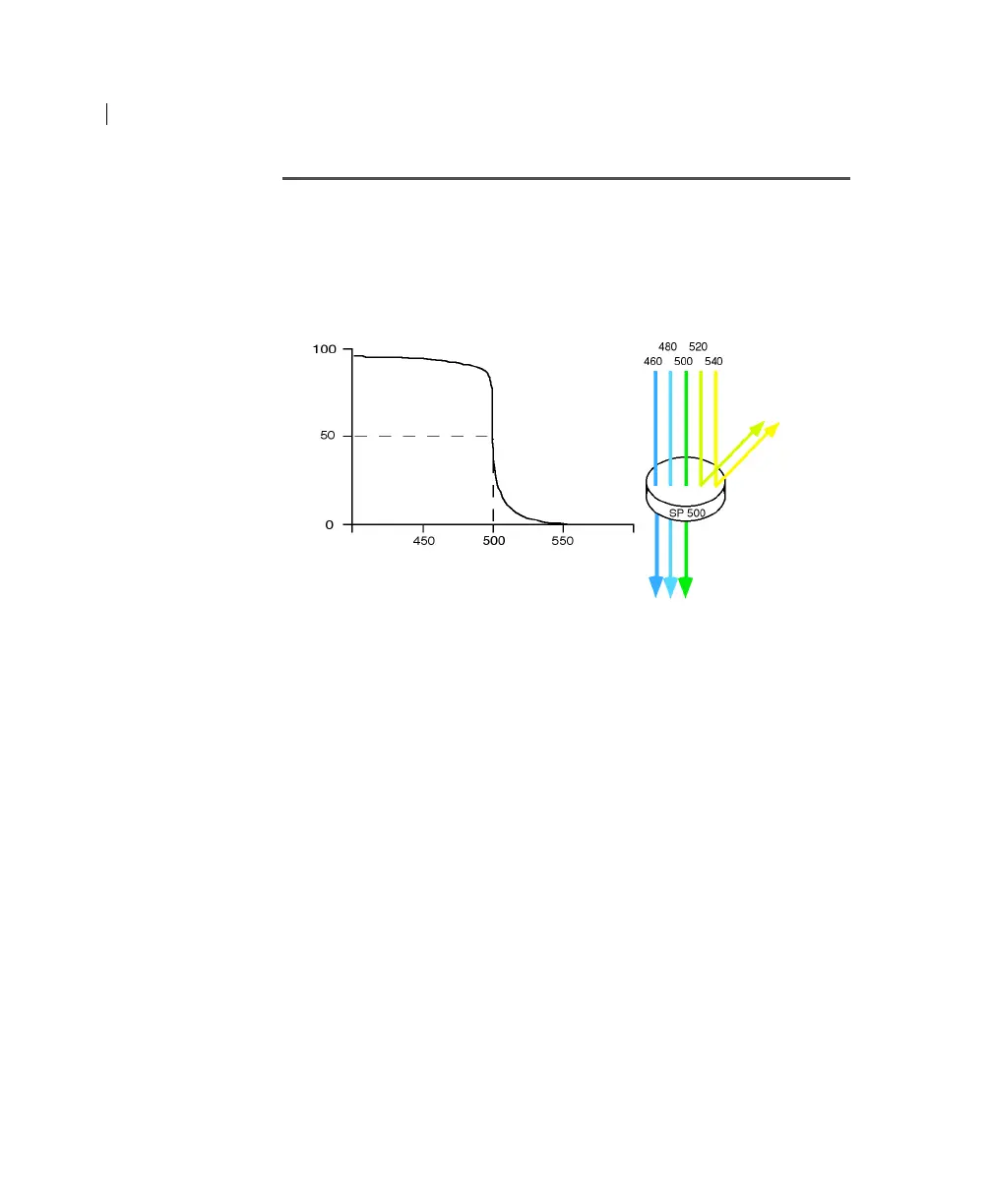 example, a 500-SP filter passes wavelengths of 500 nm or shorter,