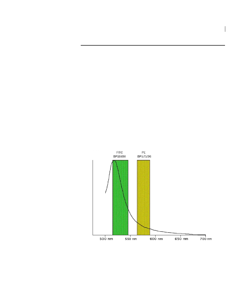 This spillover can be seen in a dot plot of FITC vs PE. The FITC