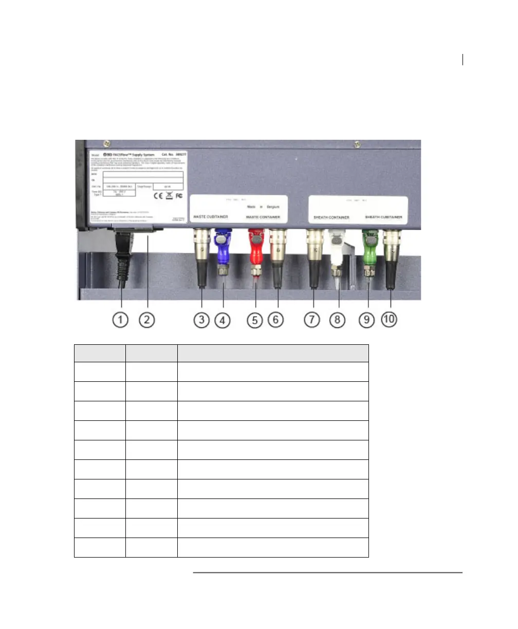 back of the BD FACSFlow supply system. The table shows