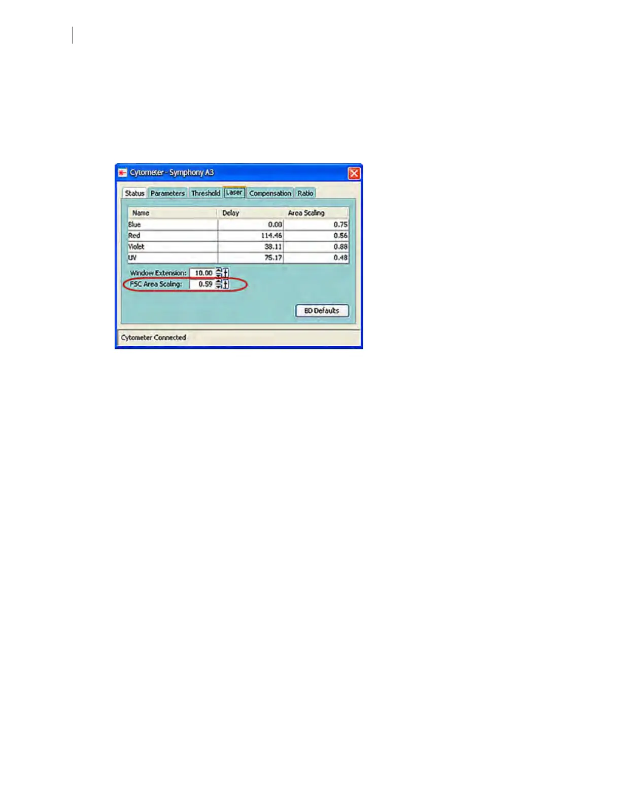 a. Click the Laser Tab in the Cytometer window.