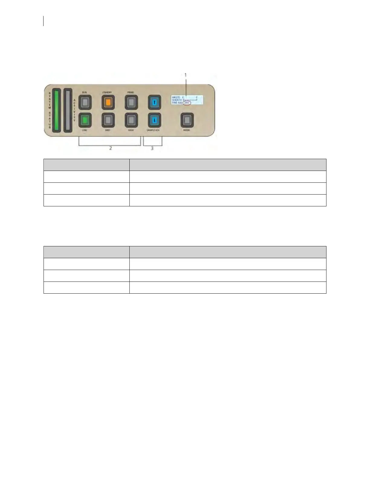 2 Sample flow rate buttons
