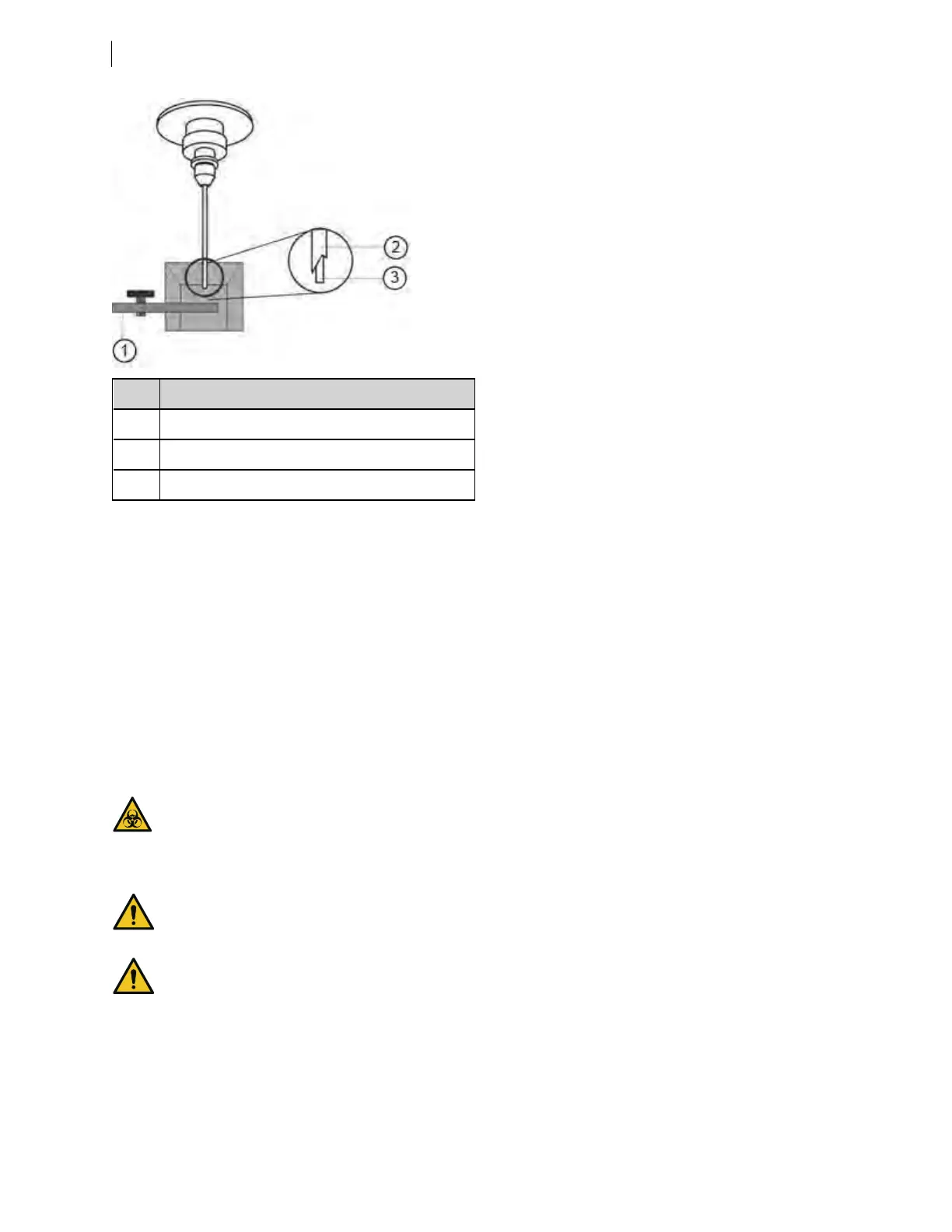 Arm that supports the sample tube and activates the droplet containment system vacuum. The vacuum is on