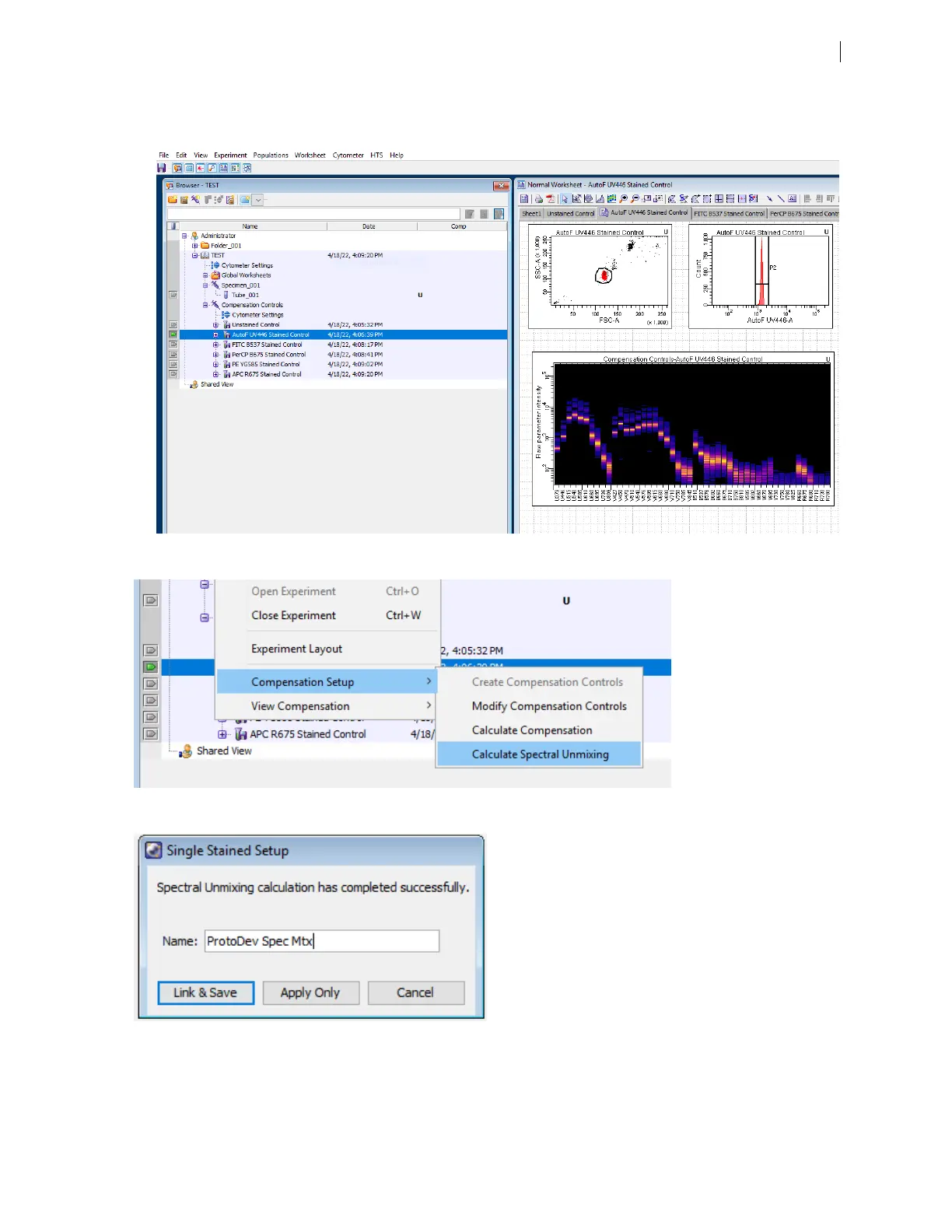 6. Select Experiment > Compensation Setup > Calculate Spectral Unmixing.