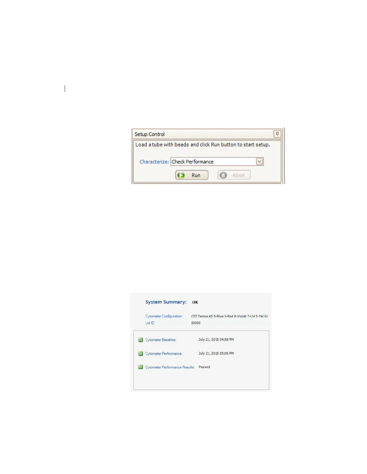 11. Verify that the cytometer performance passed.