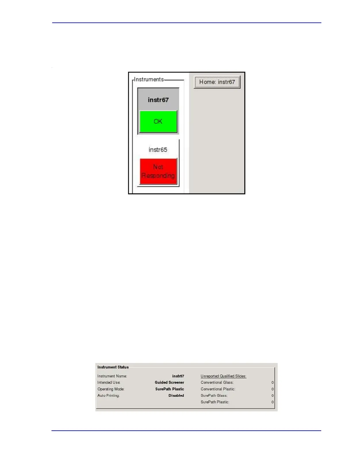 Response, Error). When printing reports, the status for the instrument button should always be