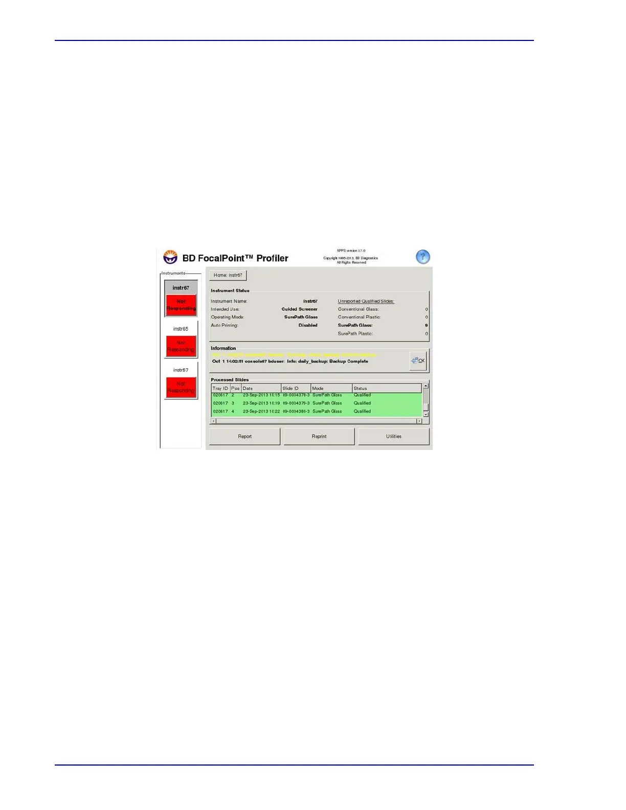 Slide data is stored on the BD FocalPoint™ Slide Profiler for a maximum of 2 months.