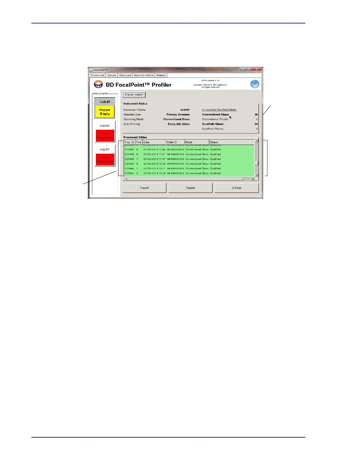 The Processed Slides field in the BD FocalPoint™ Slide Profiler Main Window is similar to the