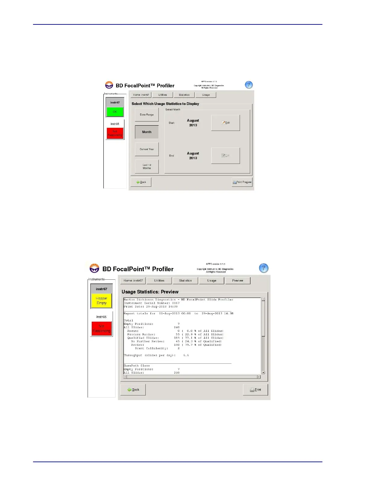 1 Choose Utilities†Statistics†Usage Statistics to display the Statistics Reports window as