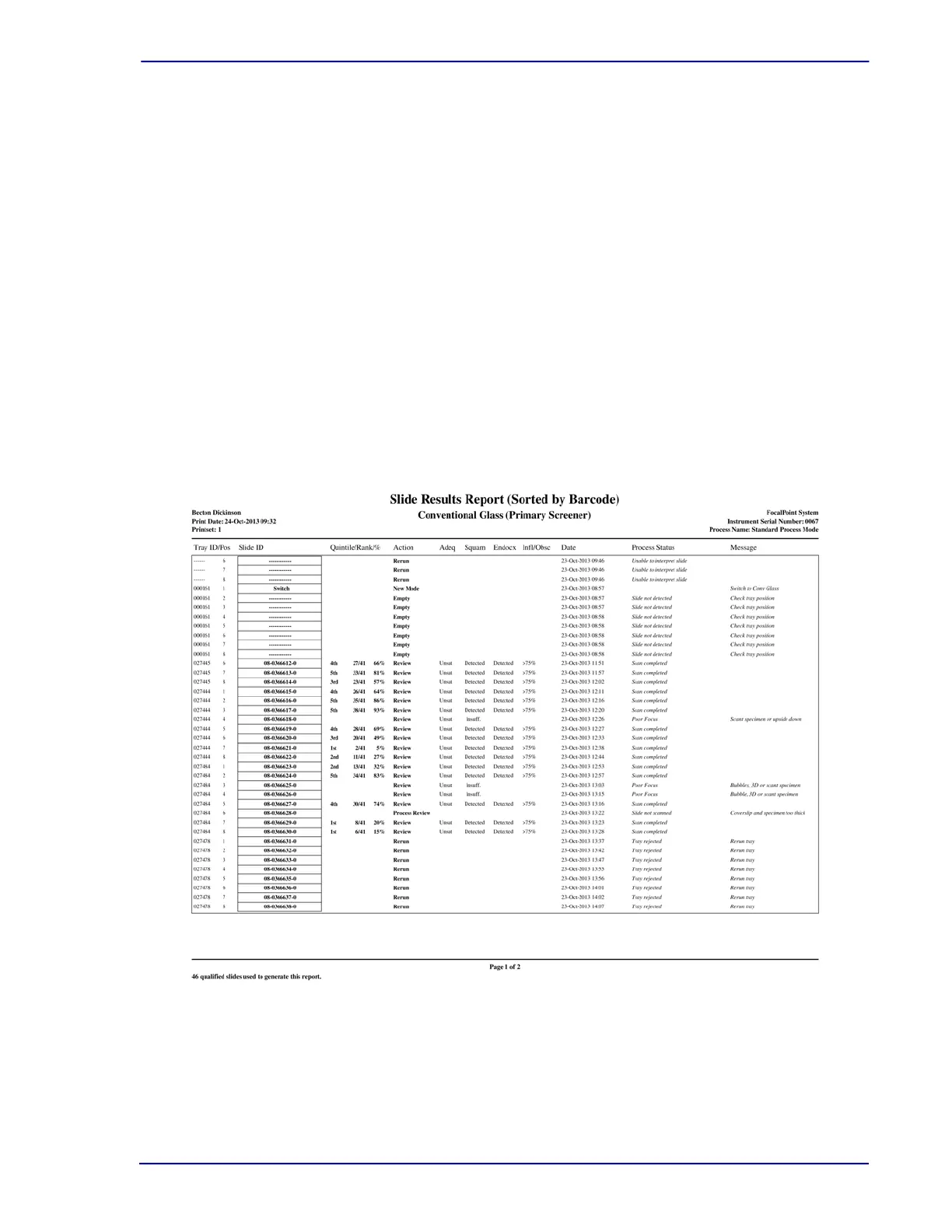Figure 18-9 – Slide Result Report (slide layout, sorted by barcode)