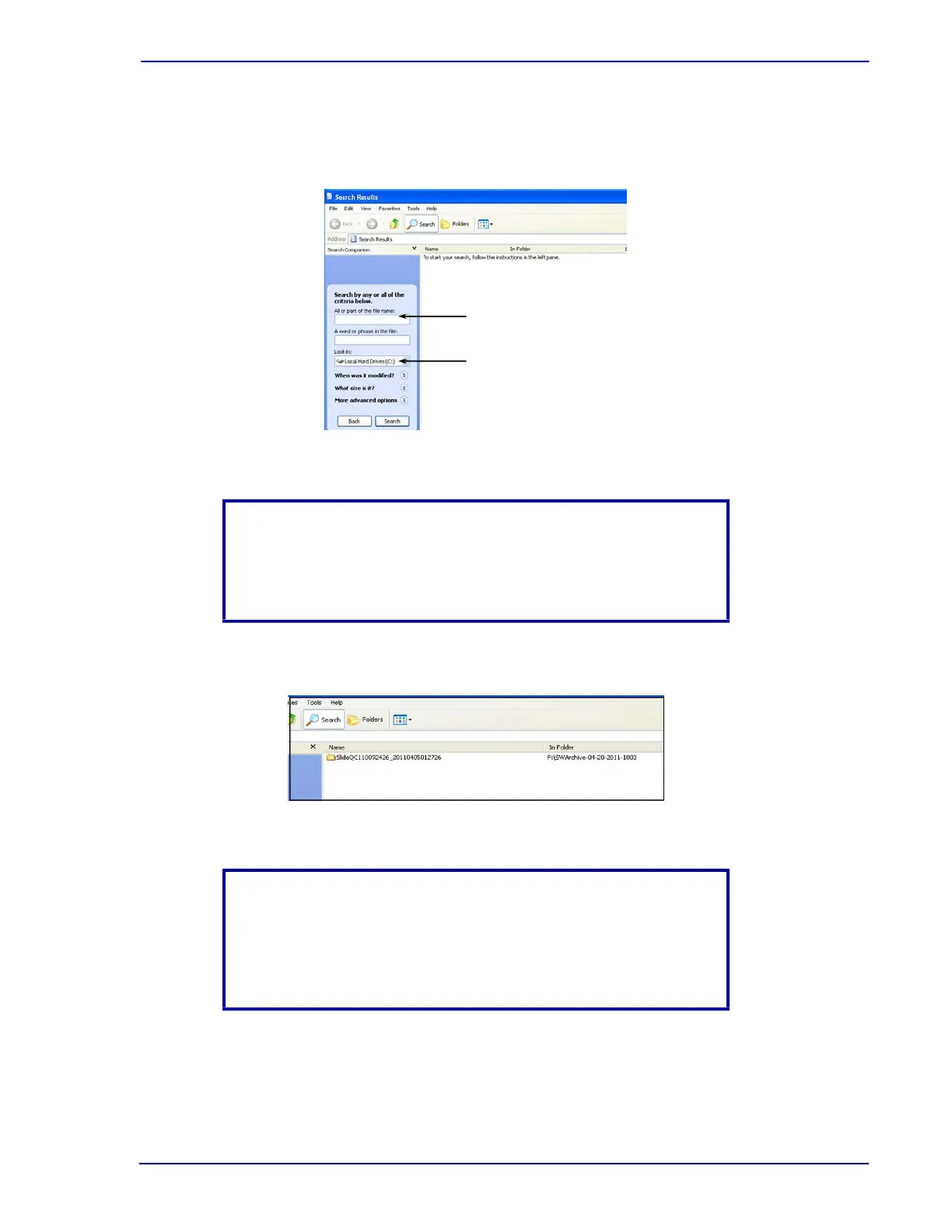 the archived data in the Look in: field.