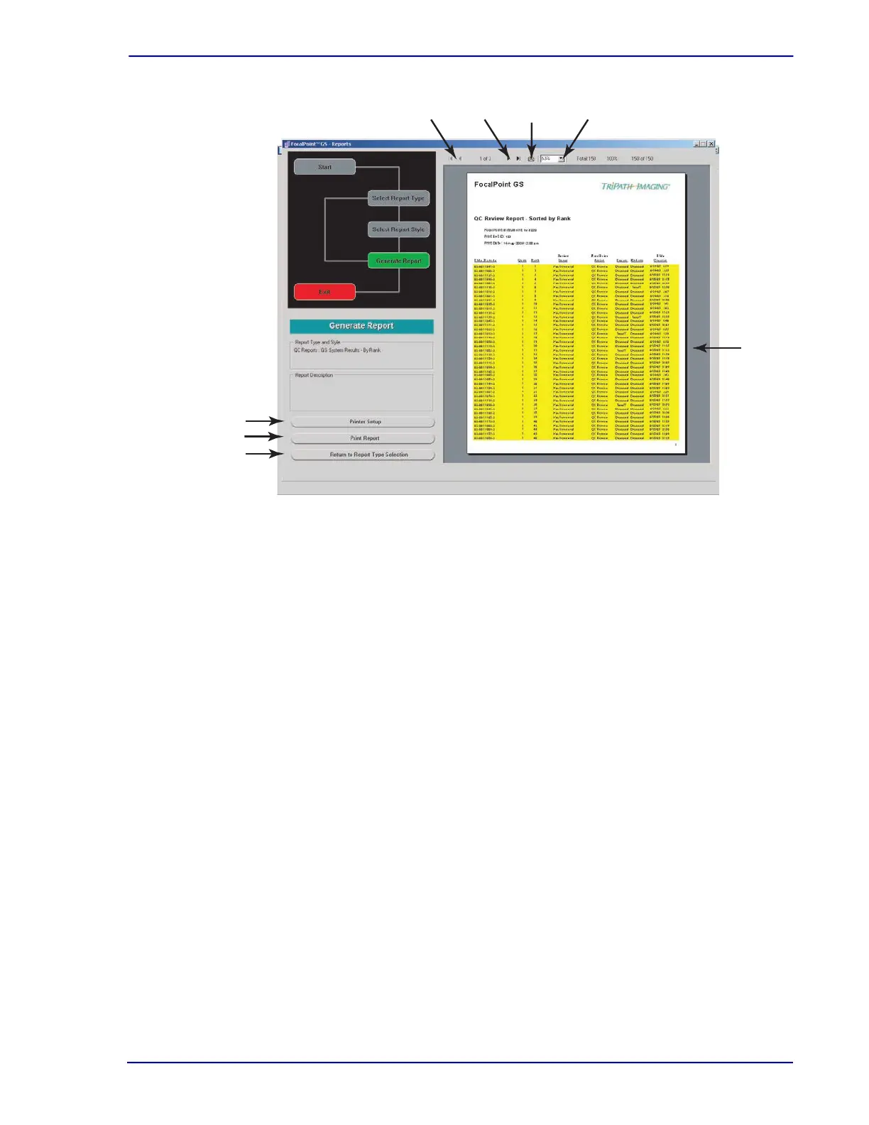 View the report preview, using the following controls. Figure 8-3 illustrates each of the controls