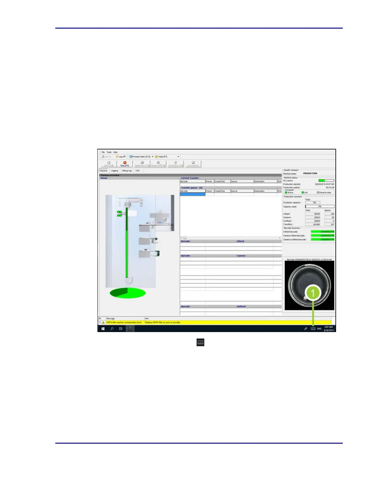 which is displayed on a touchscreen monitor mounted to the Main Base cabinet of
