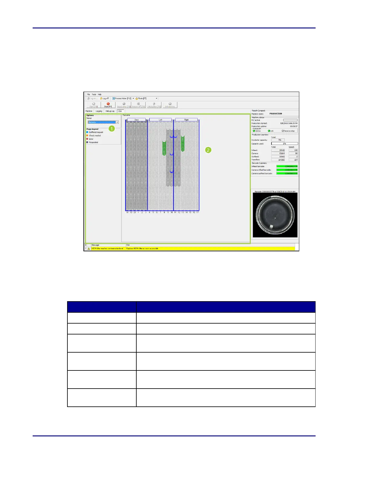 The Container Store Availability (CSA) tab displays which rack positions are occupied, which