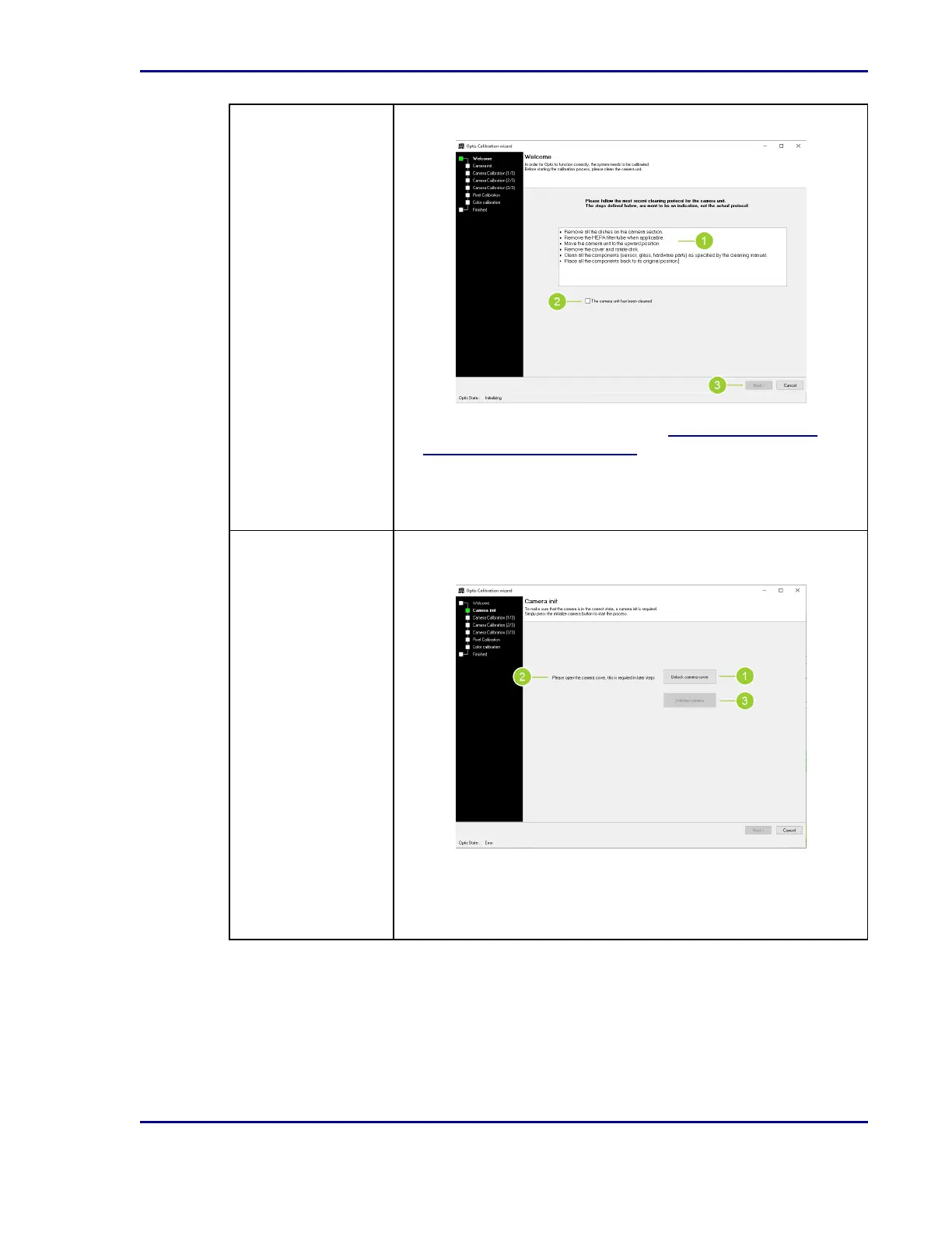 Step 1: Welcome The calibration of Optis™ starts with cleaning the camera unit.