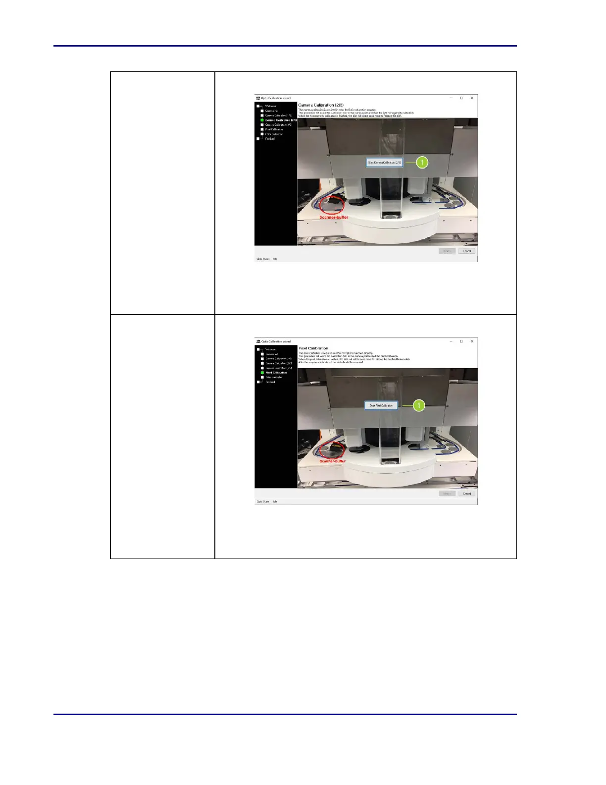 2. Select Start Pixel Calibration (1). Follow the directions and