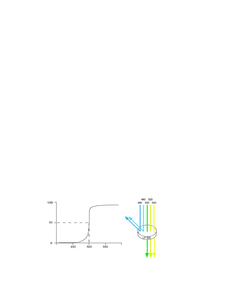 LP filters pass wavelengths longer than the filter rating. For example, a 500-LP