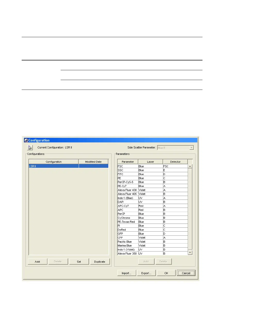 Table E-1 Default filters and fluorochromes (continued)