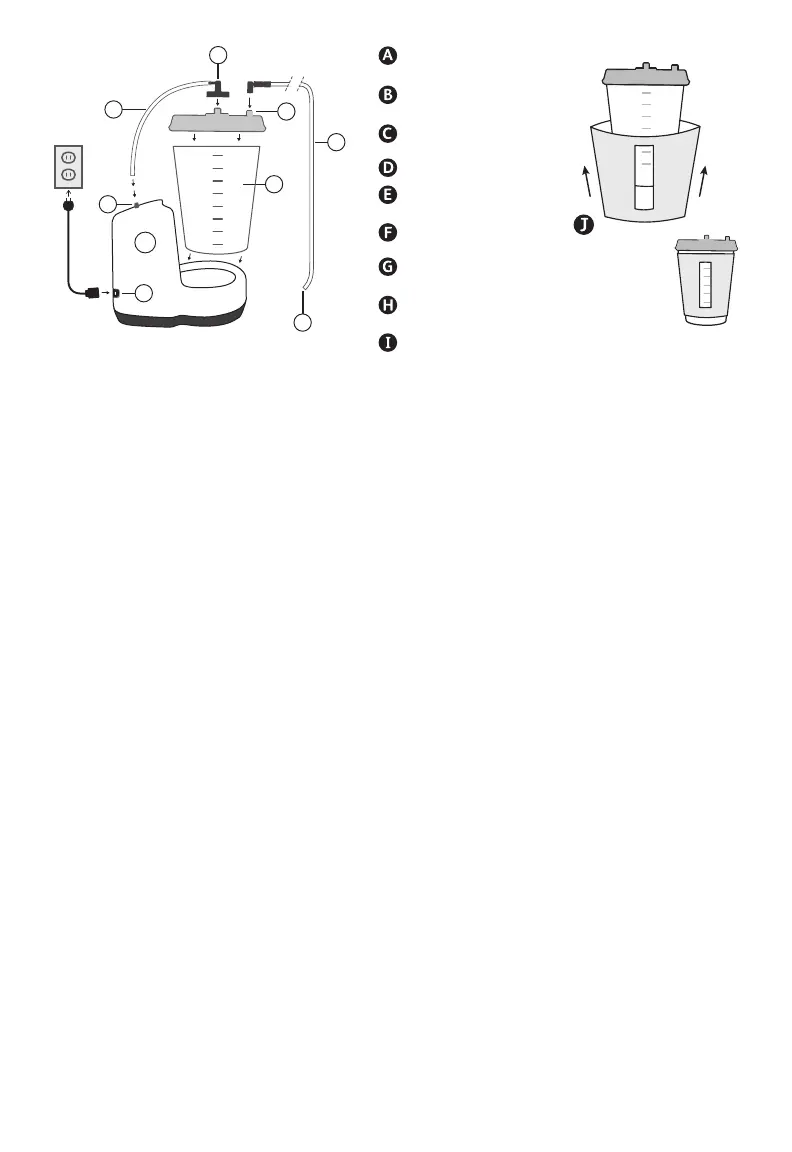 6. Attach the collector tubing (G) to the connector port (H) on the collection canister