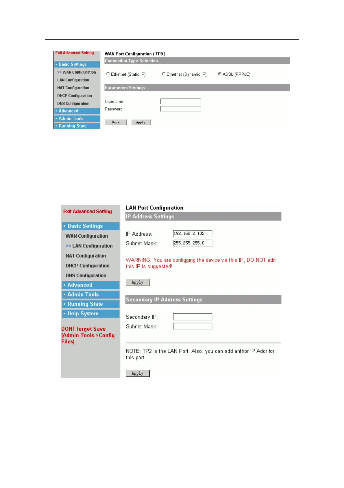 Users can configure LAN port to connect LAN. The configuration page layout is