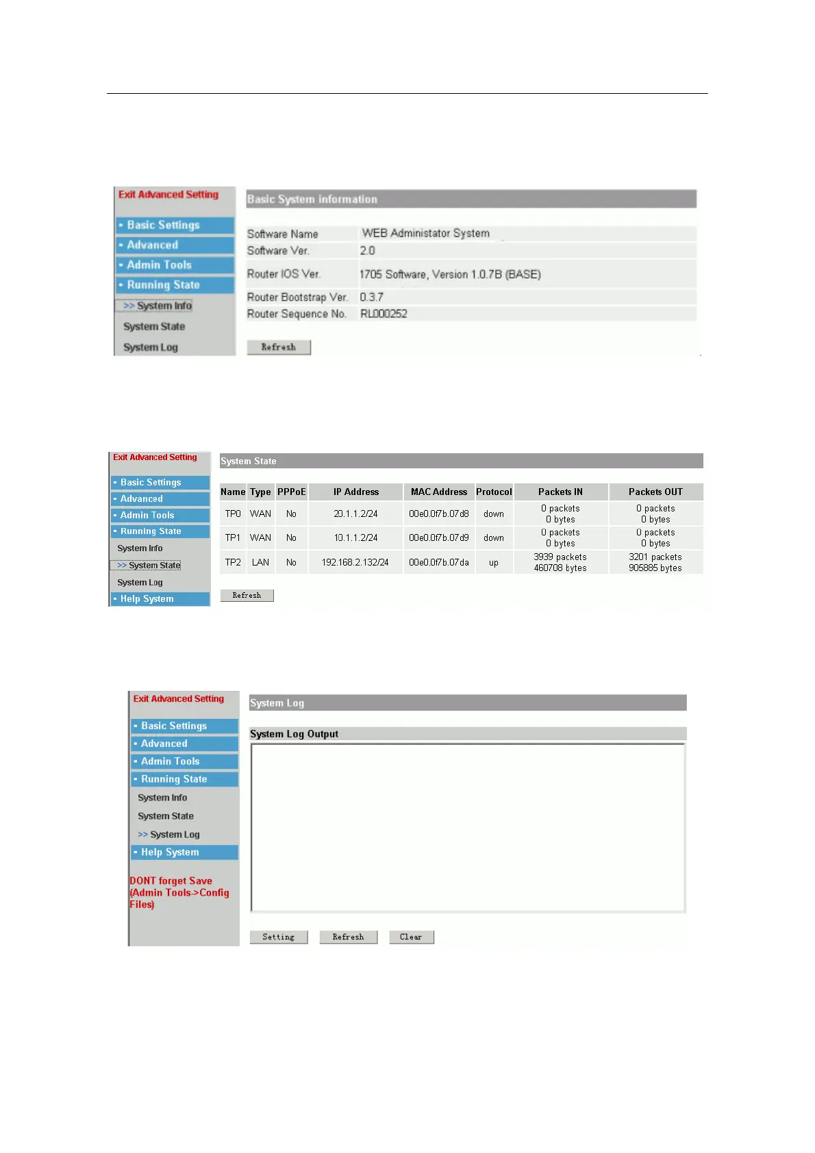 The page layout shows the log information. Click “Clear” to clear the information, click