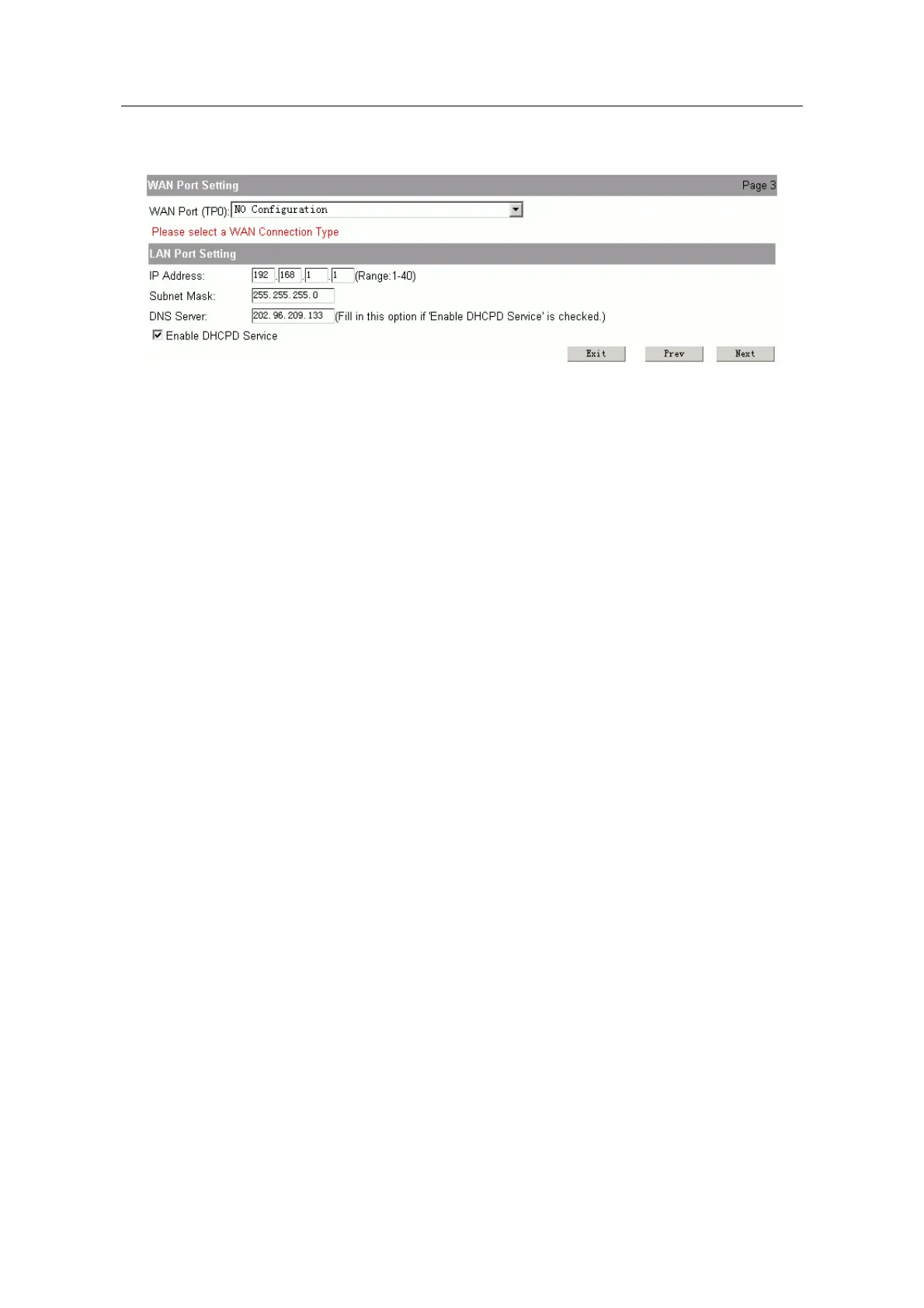 DNS server: fill in the ip address of DNS server, the default is 202.96.209.133.