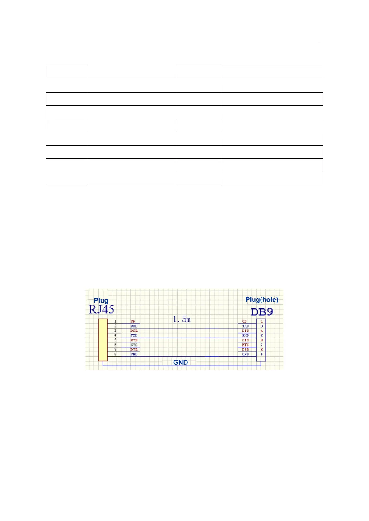 terminal device. One end of the cable is a 9-pin RJ45 plug and the other end is a 9-hole