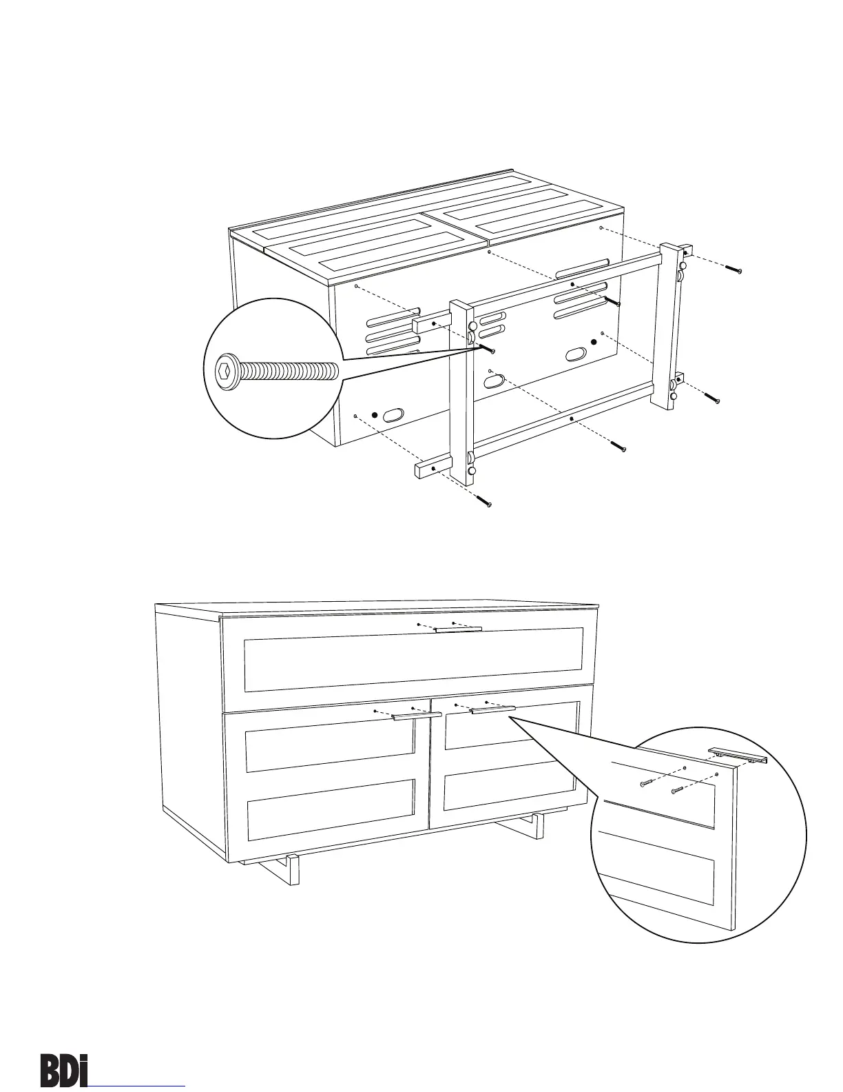 the bottom of the Assembled Cabinet (F) with