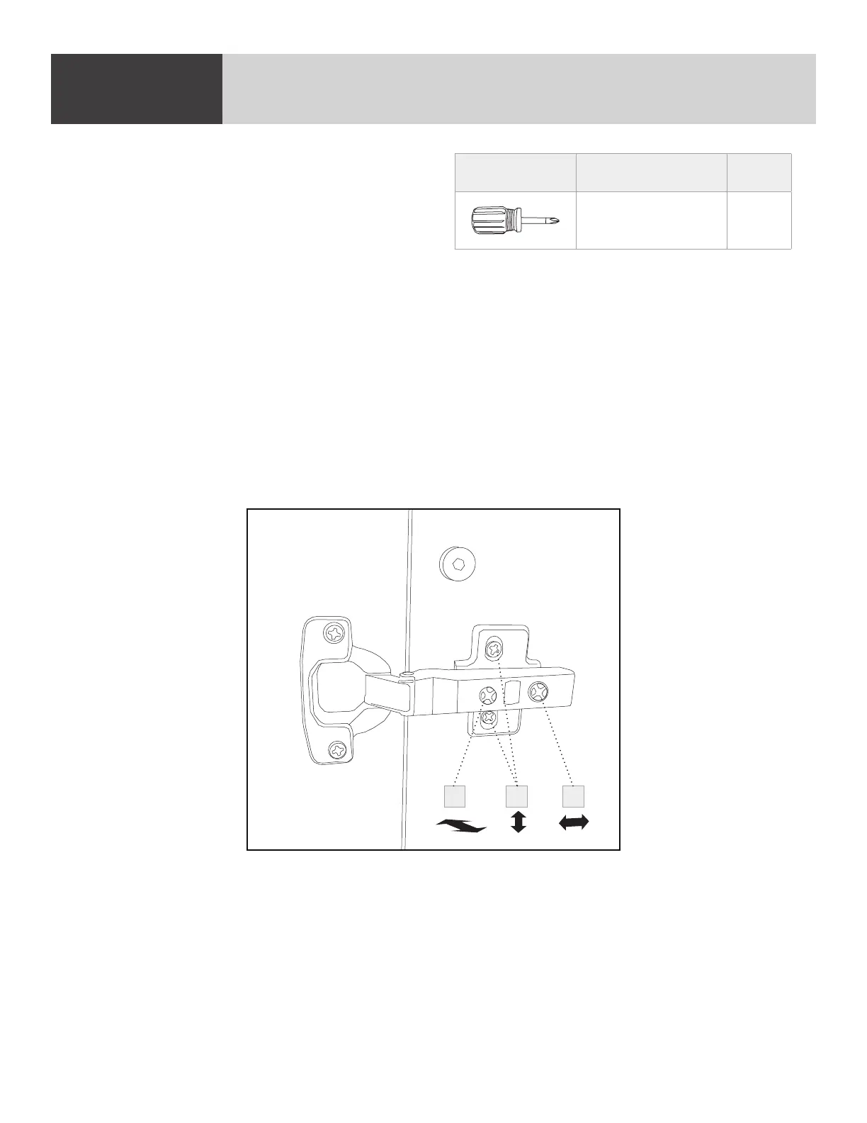 Use a (T1) Phillips Screwdriver to adjust the door hinges: