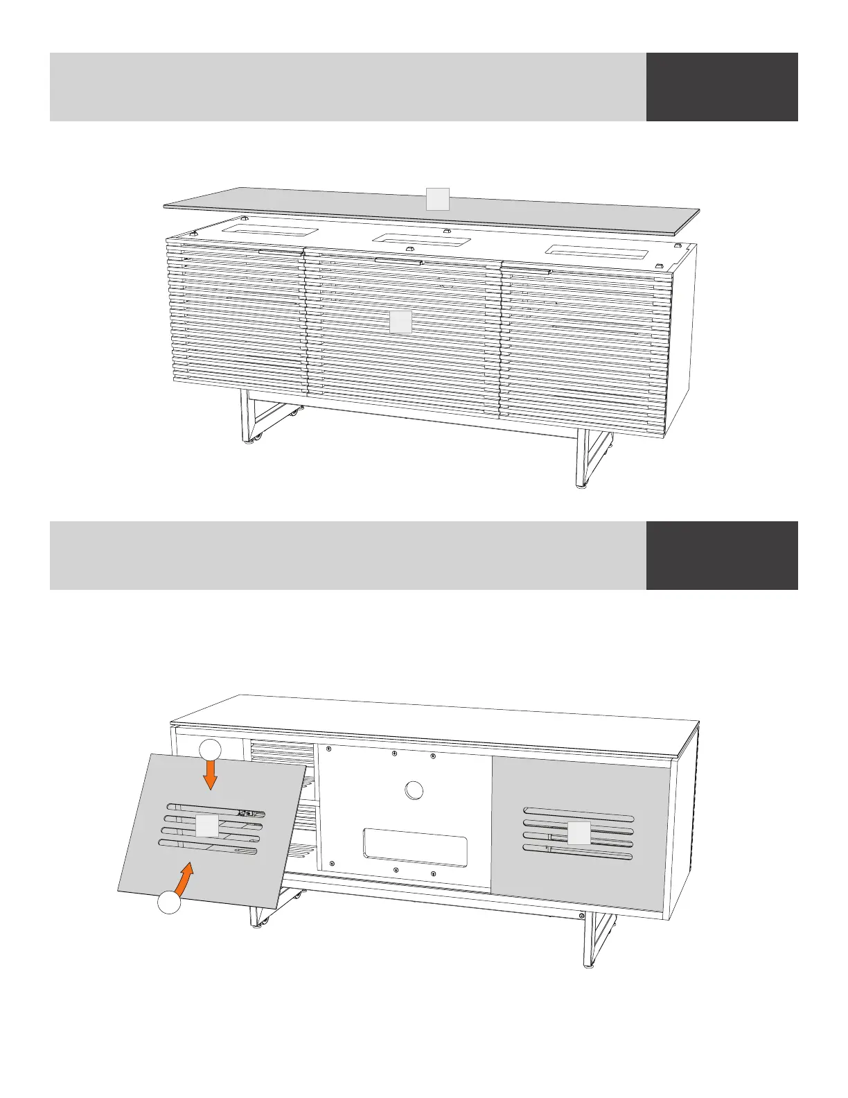 Install both (L) Back Panels to the backside of the cabinet by inserting top edge in upper channel
