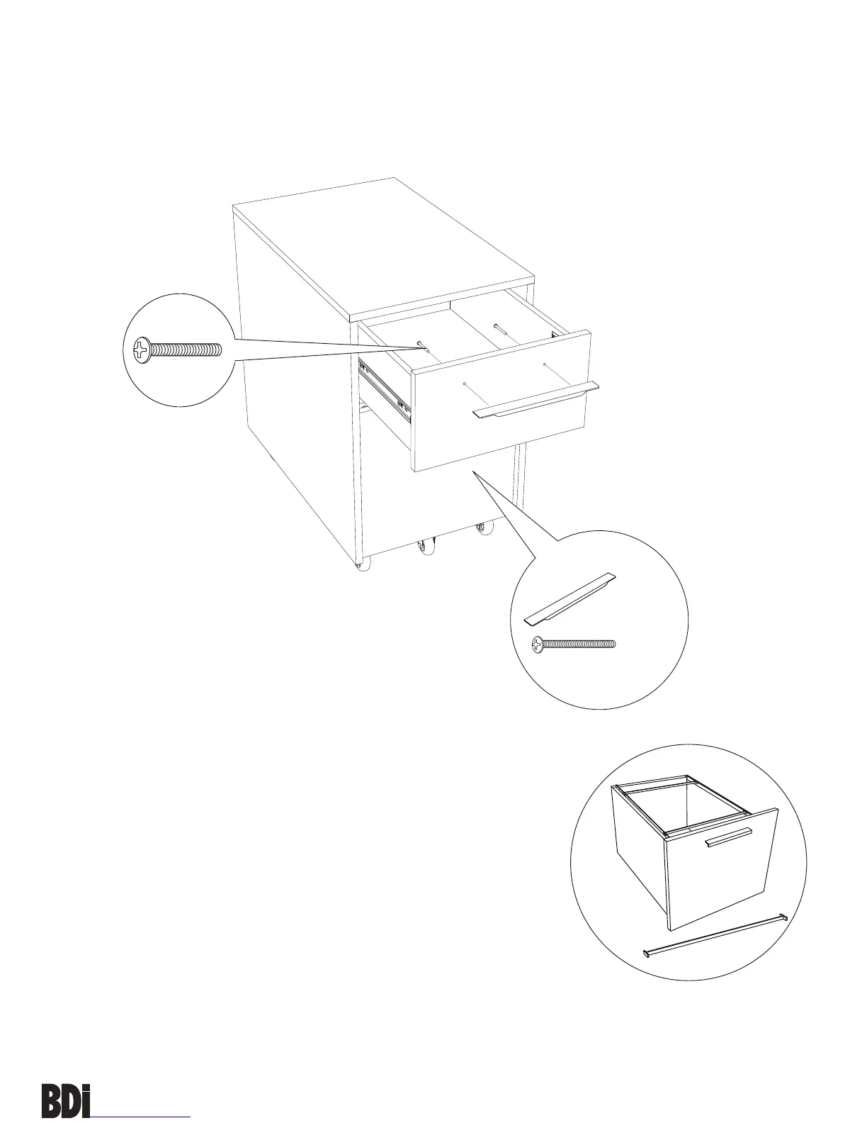 Carefully turn pedestal upright and then install Pull (H) to top drawer