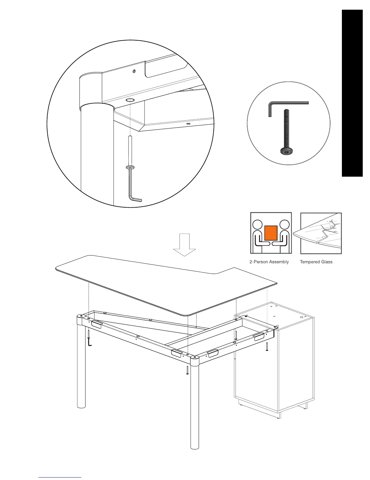 lower the Glass Top (I) onto the frame.