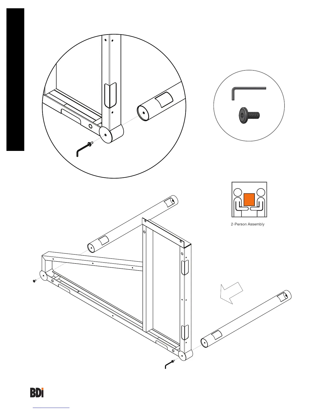 Leg (H) to the underside of Desk Frame