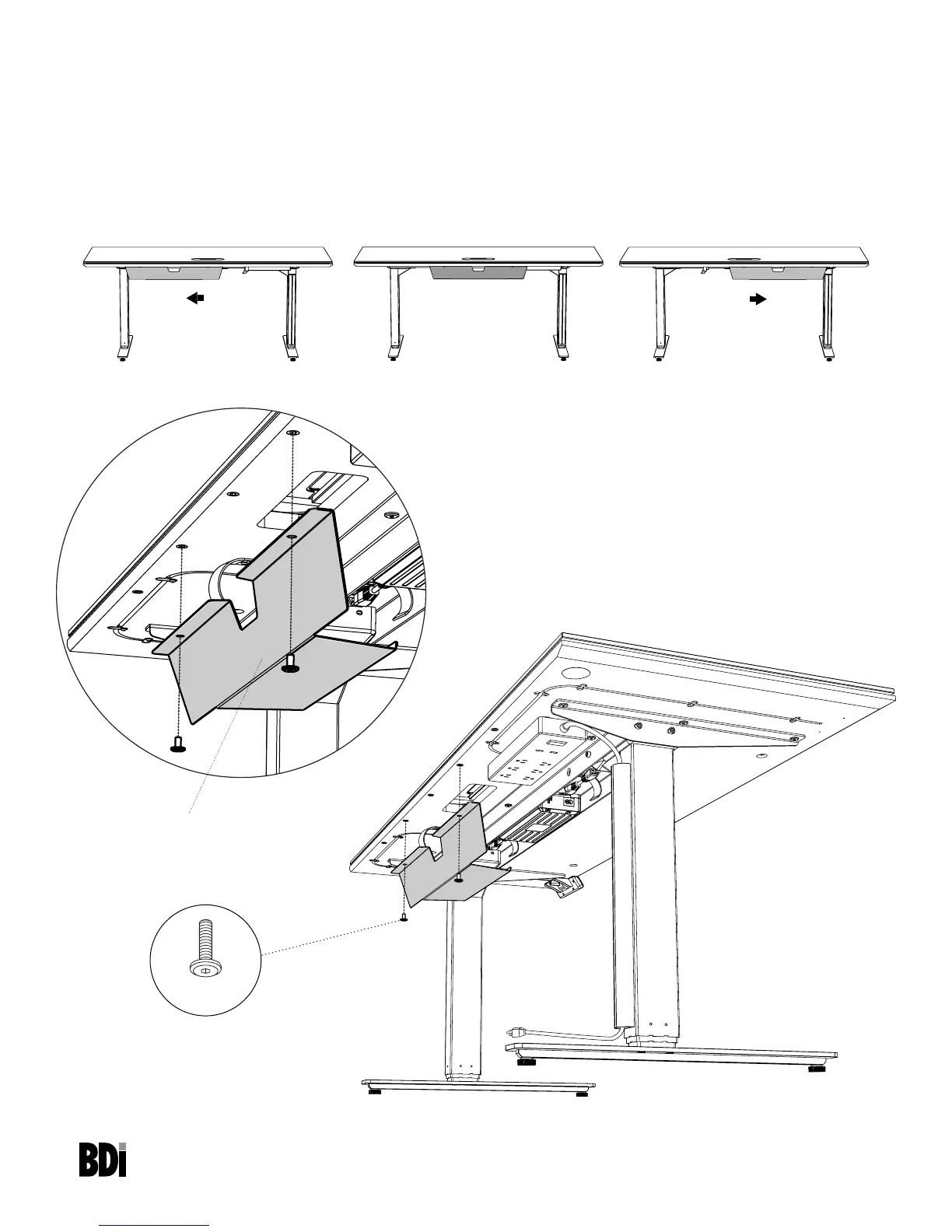 metal Wire Tray C7 to the back edge of the bottom of the desk with 2 Screws H5.