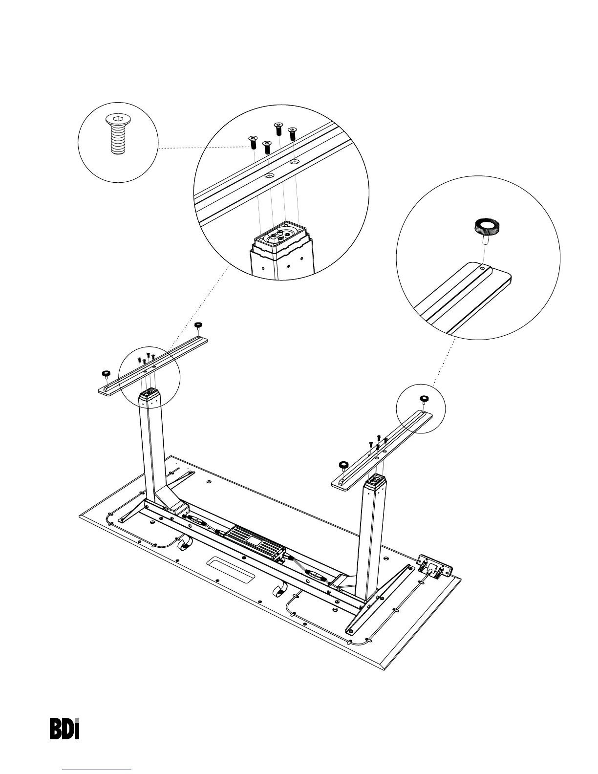 edge of the desk. Thread in Levelers H7 into the bottom front and back corners of each foot.