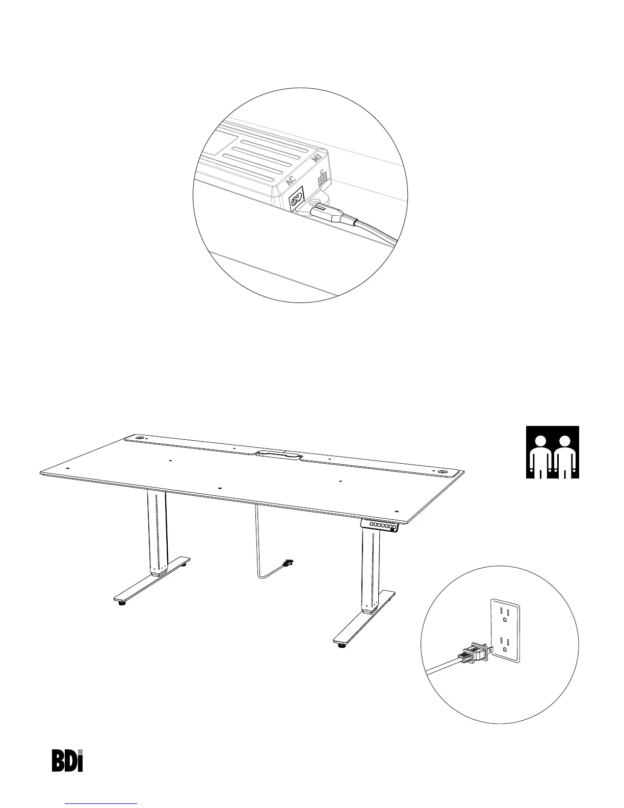 With the help of another person, carefully flip the desk on to its feet. Plug the other end of the Power Cord into