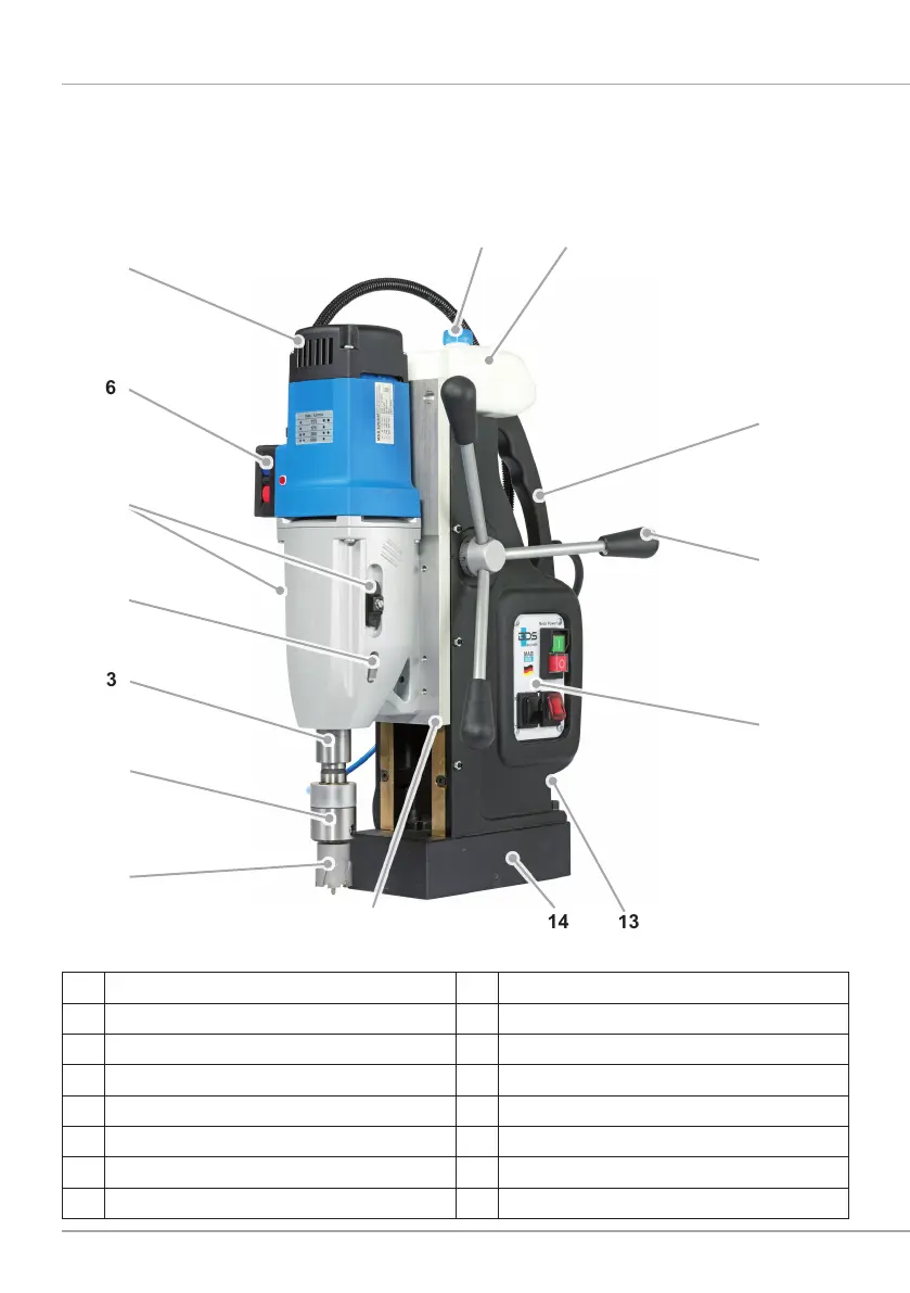 1 Core drill (not supplied as standard) 9 Cutting oil tank