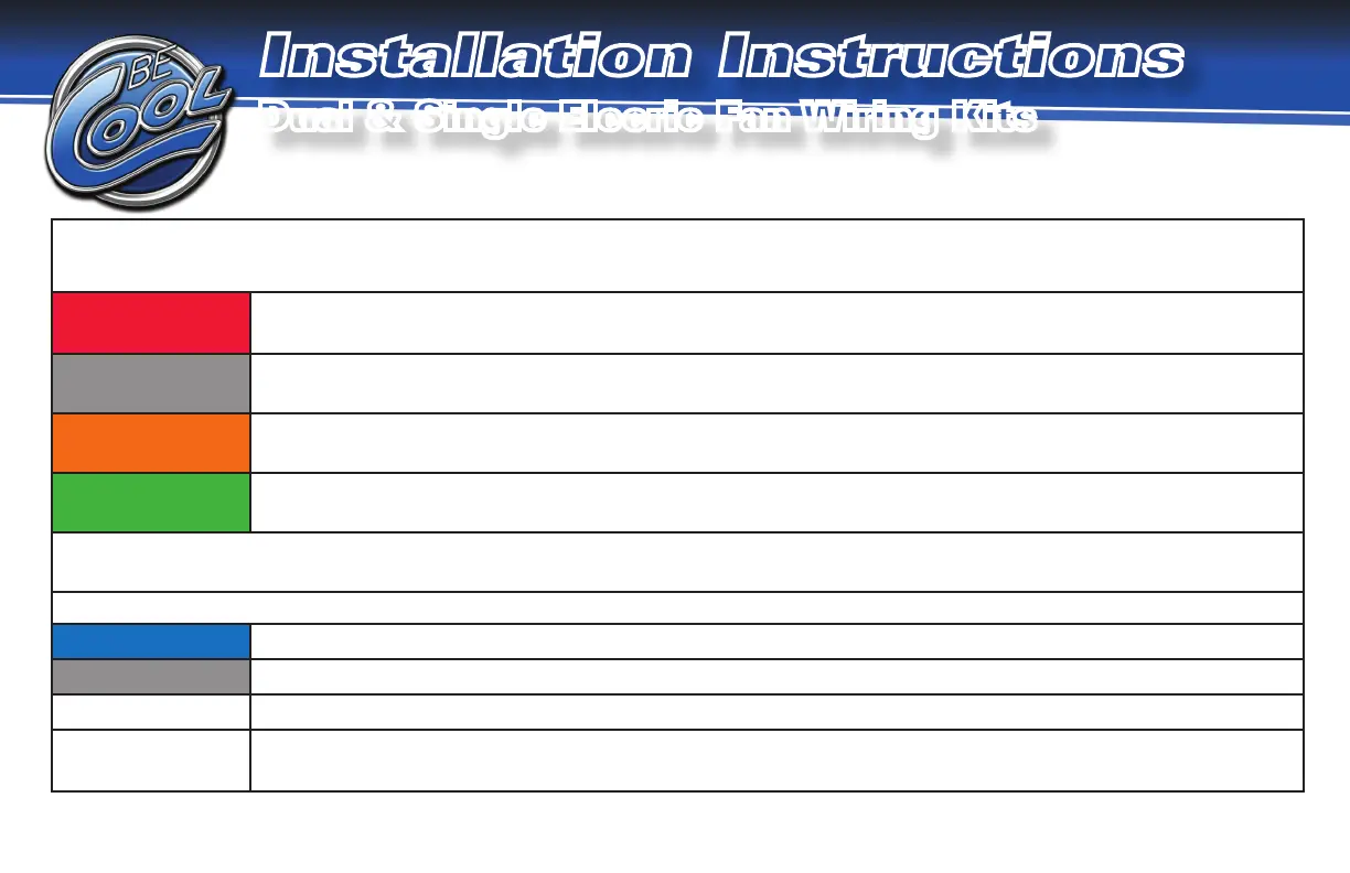 Wiring Instructions for Be Cool Kit Part #75196 (Follow all instructions)