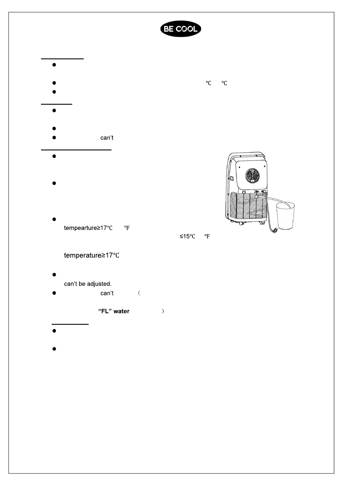 Temperature be set. Note : when use dehumidify function, should remove