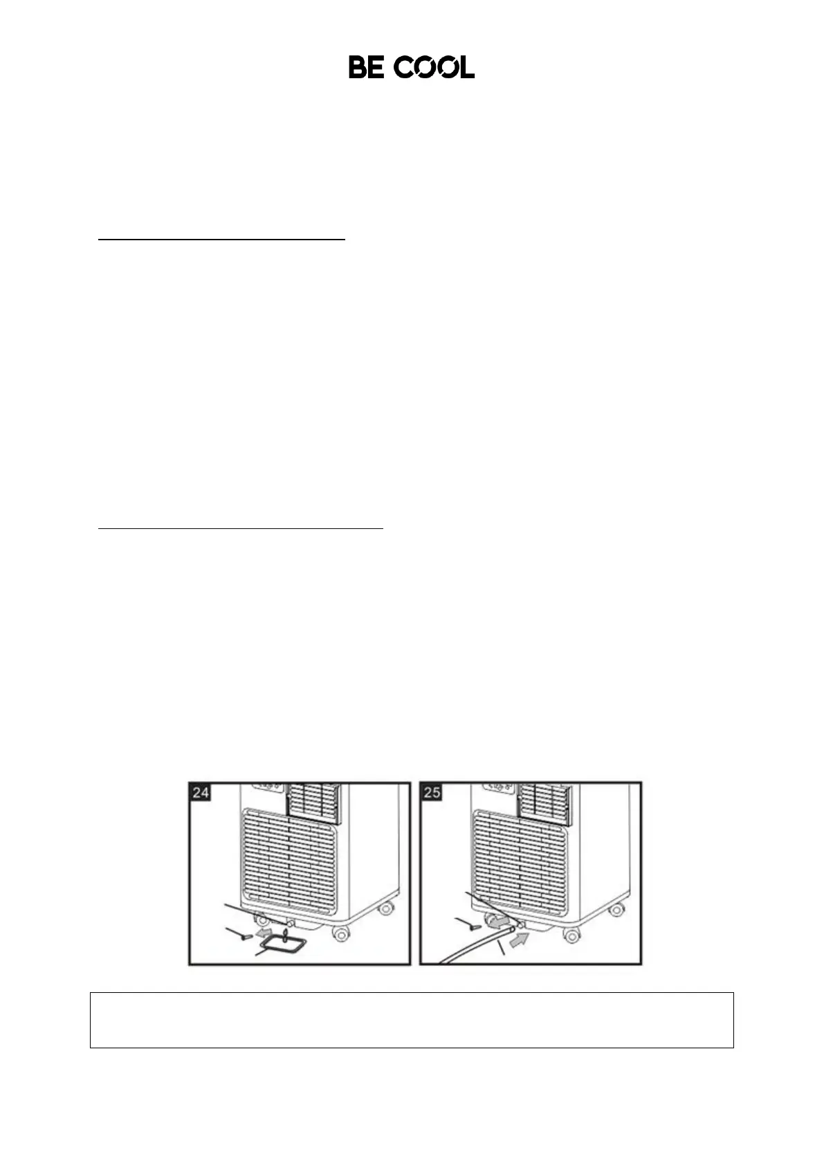 • Das Wasser wird in die Auffangwanne abfließen (die Auffangwanne ist