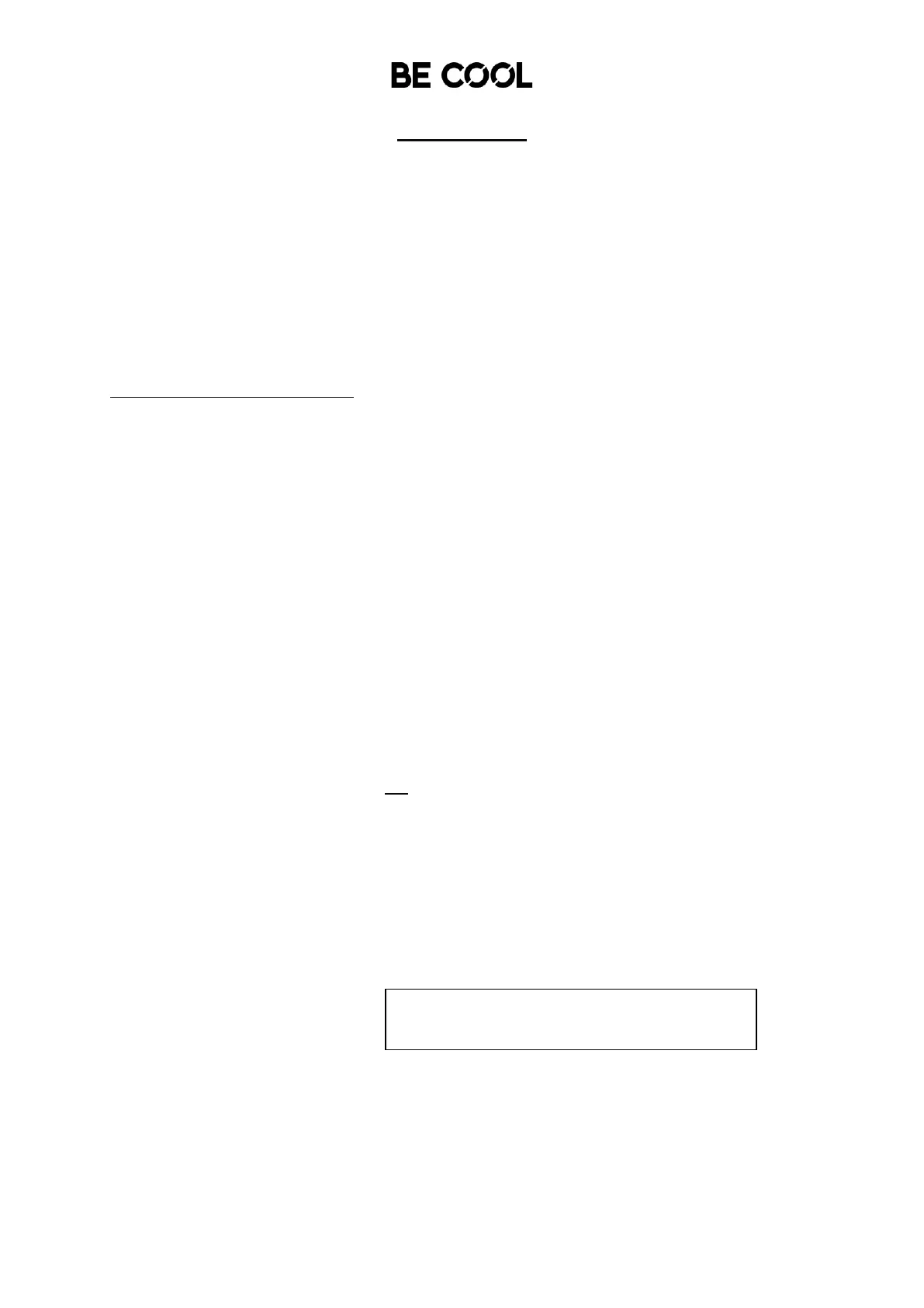 Herzliche Gratulation zu Ihrer Wahl. Wir wünschen Ihnen viel Freude mit Ihrem BE COOL Gerät!