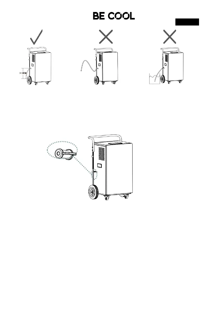 Insert a water hose with an inner diameter of 5 mm into the water drainage