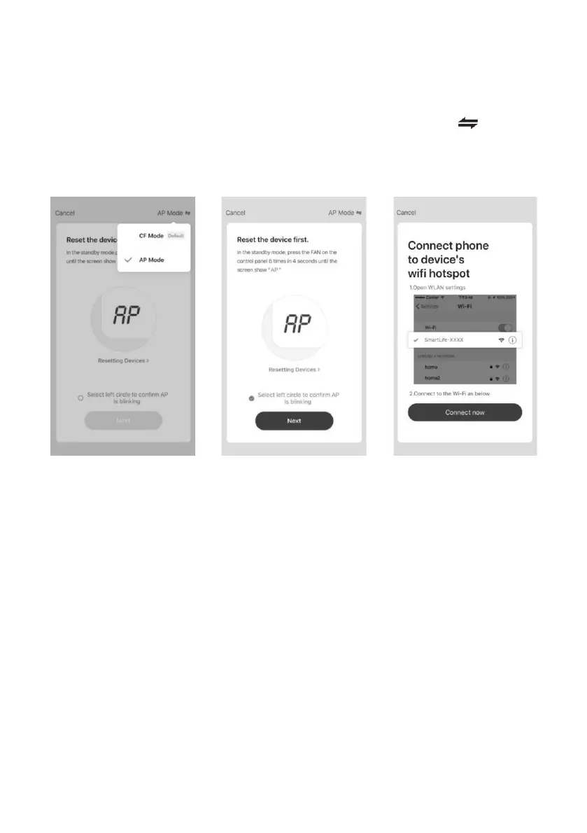 "Kreis auswählen, um zu bestätigen, dass der AP blinkt" und tippen Sie auf