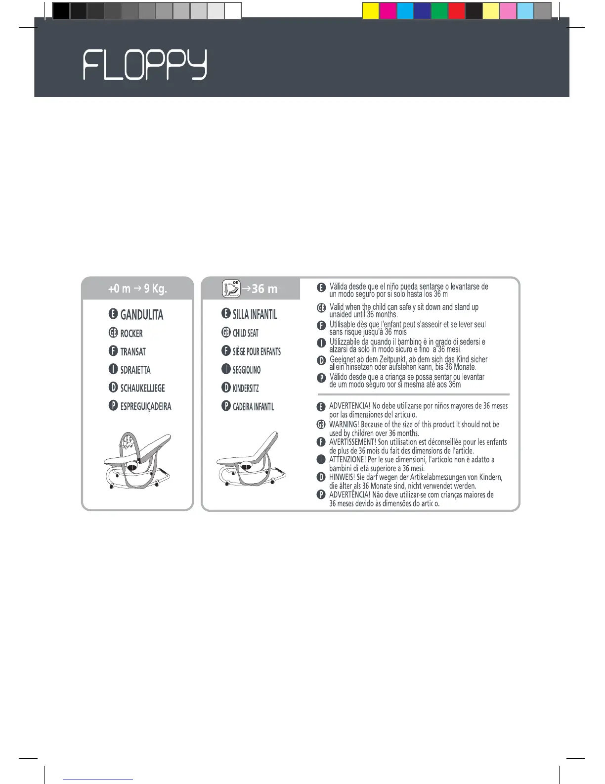 Be Cool FLOPPY - Product Suitability and Age Guidelines; Rocker;Gandulita (0-9 Kg); Child Seat;Silla Infantil (up to 36 Months); Age Limit Warning